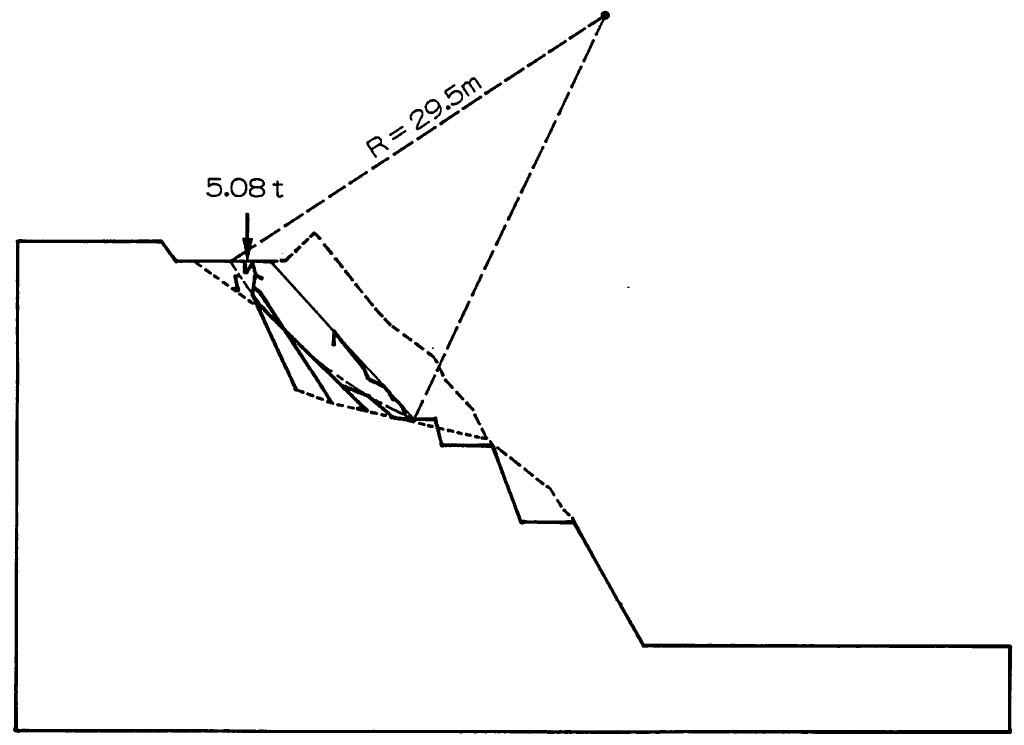 地盤が均質で、あまり節理、層理が含まれないような斜面、例えば、盛土斜面のような場合には対数ら線を利用する方法も考えられるが、