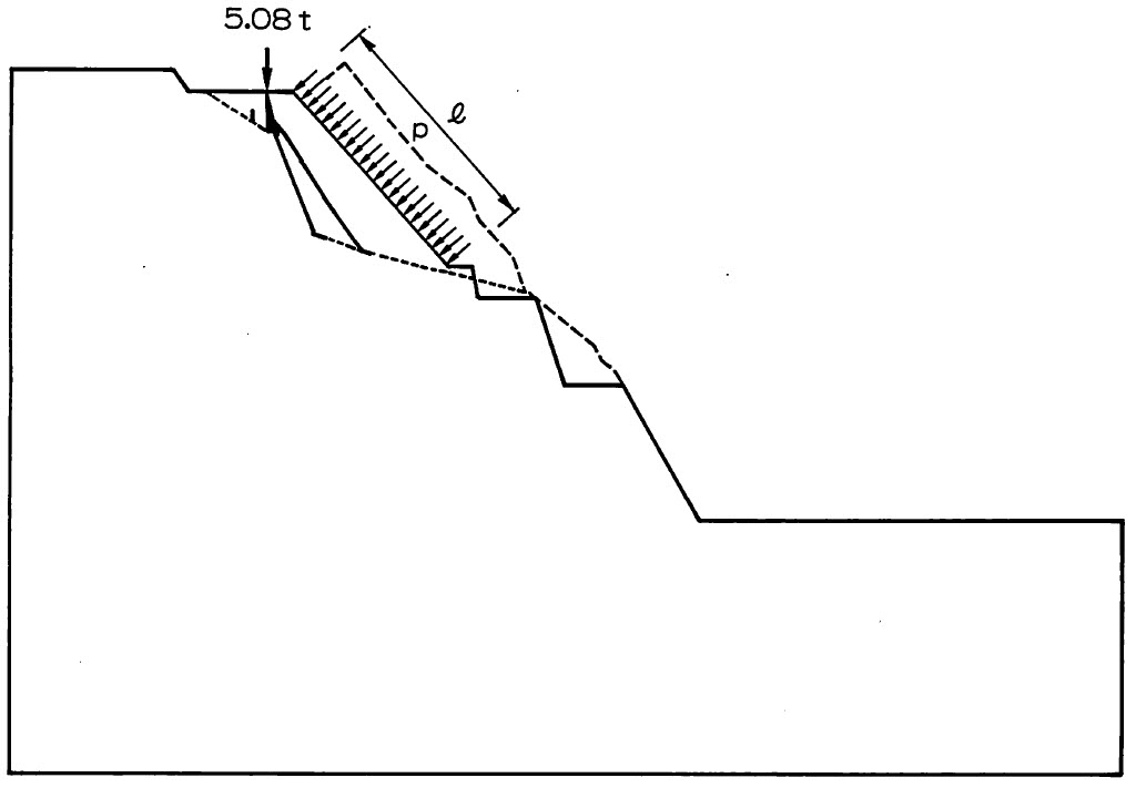 斜面の初期地圧を計算により求めるような場合には反復法を利用することができるが、安定解析が中心となる場合には、山田の方法による荷重増分法が適している。この理由としては、斜面崩壊が発生するような湯合、反復法では解が収束しないこと、崩壊状況が把握できないことなどがある。急斜面などで引っI張りクラックが発生する恐れがある場合には、すべり破壊のみを対象とする安定解析ではなく、