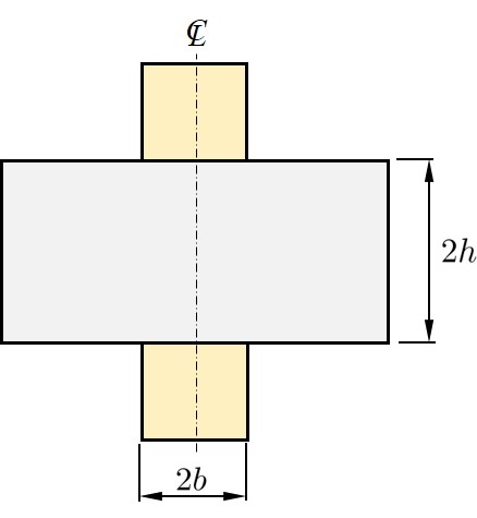 図7.2 に示す.この例題では $2h=5{\rm cm}, 2b=2.5{\rm cm}, h/b=2$ としている.ただし,