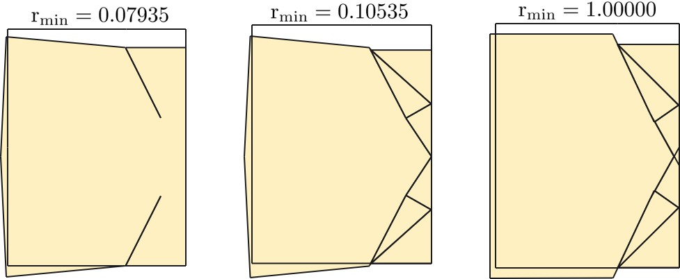 荷重制御によって,ペナルティ辺が降伏し,構造が崩壊機構条件を満たすと,最終的に連立方程式を解くことができなくなる.この時点で構造物は崩壊したとしてメッセージを出力して計算を終了させる.一方,計算誤差などの関係により,メカニズムに達していながら変位が求まってしまうこともある.しかし,それ以後の計算には意味が無いので,許容値以上の変位が生じていたならば
