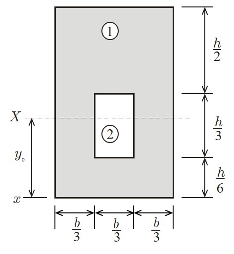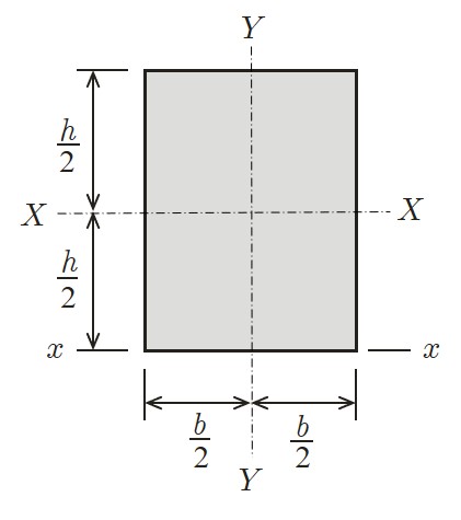 図3.1.3に示す長方形断面の $x$ 軸ならびに $X$ 軸,$Y$ 軸に関する断面1次モーメントを求めてみよう.