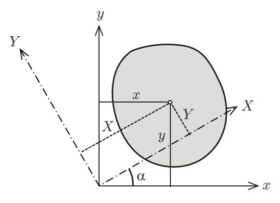座標変換の公式と呼んでいる.この座標変換の公式を用いて座標系 $(X-Y)$ の断面2次モーメントを座標系 $(x-y)$ の断面諸量により表してみよう.