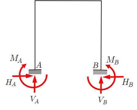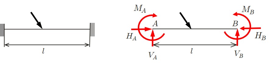 $\hspace{7em}$図4.2.5 両端固定ばりの反力