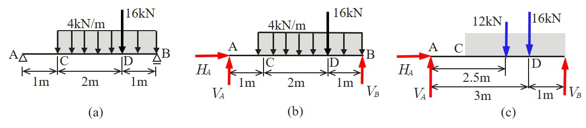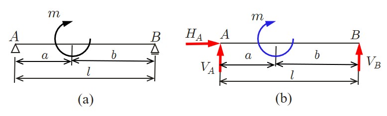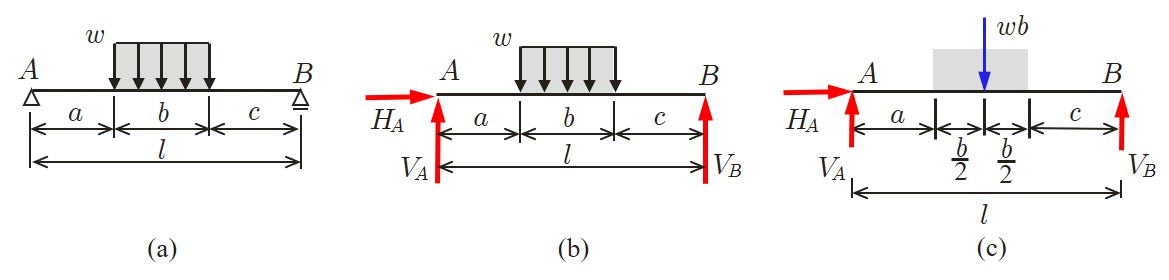 $\hspace{3em}{\rm (a)}$単純ばり $\hspace{9em}{\rm (b)}$支点反力