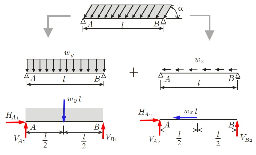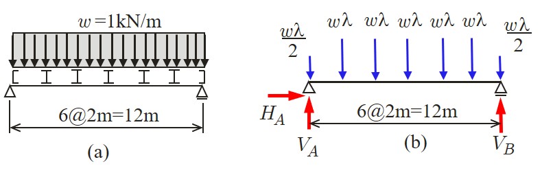 $\hspace{7em}$図4.2.4 単純ばり反力