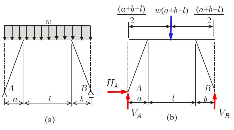 V_B = \frac{w}{2l}(a+b+l)(-a+b+l)