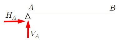 鉛直方向反力 $(V)$ と水平方向反力 $(H)$ の2種類の反力が生ずる .また,解析用のモデルにおける支点記号には