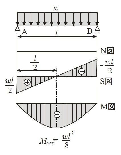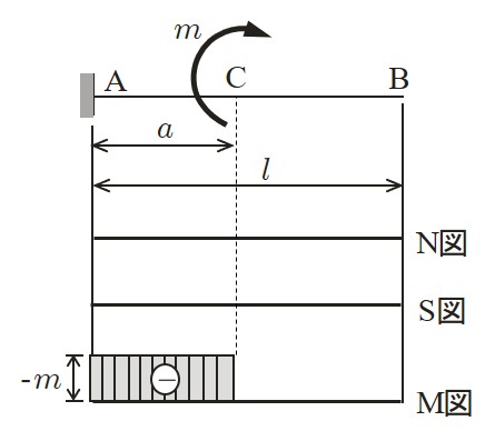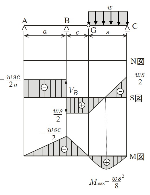 この場合も最大曲げモーメントは支点において生じ,その値はモーメント反力と一致する.