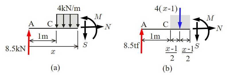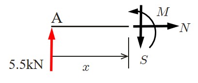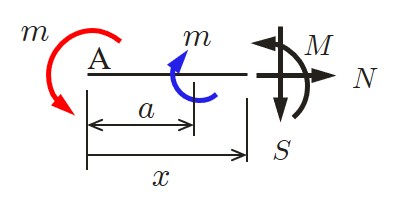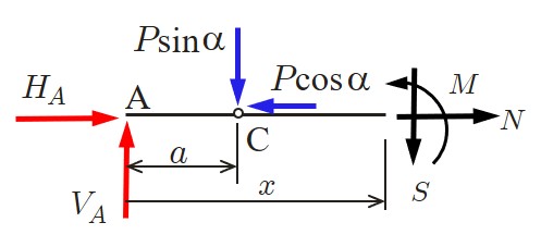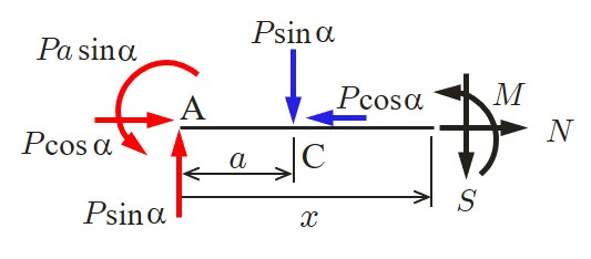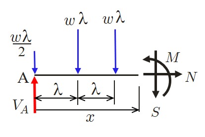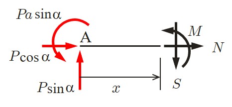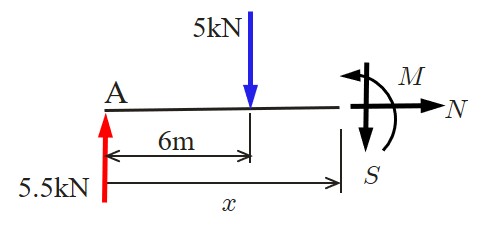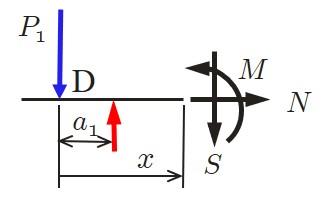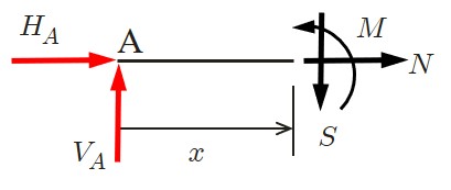 一方,任意切断面における断面力は以下のようにして求めることができる.