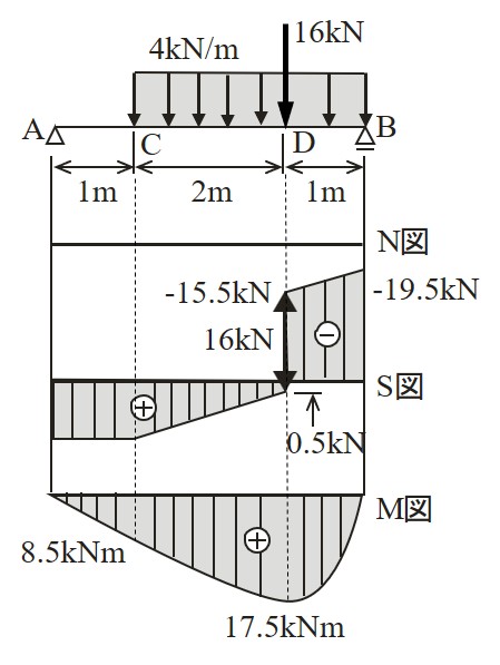 $\hspace{2em}$図4.3.27(d) 断面力図