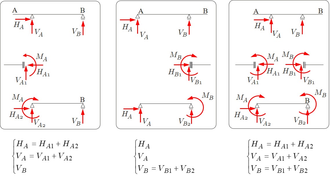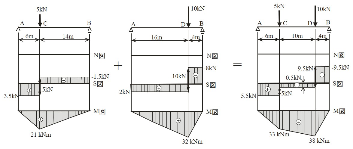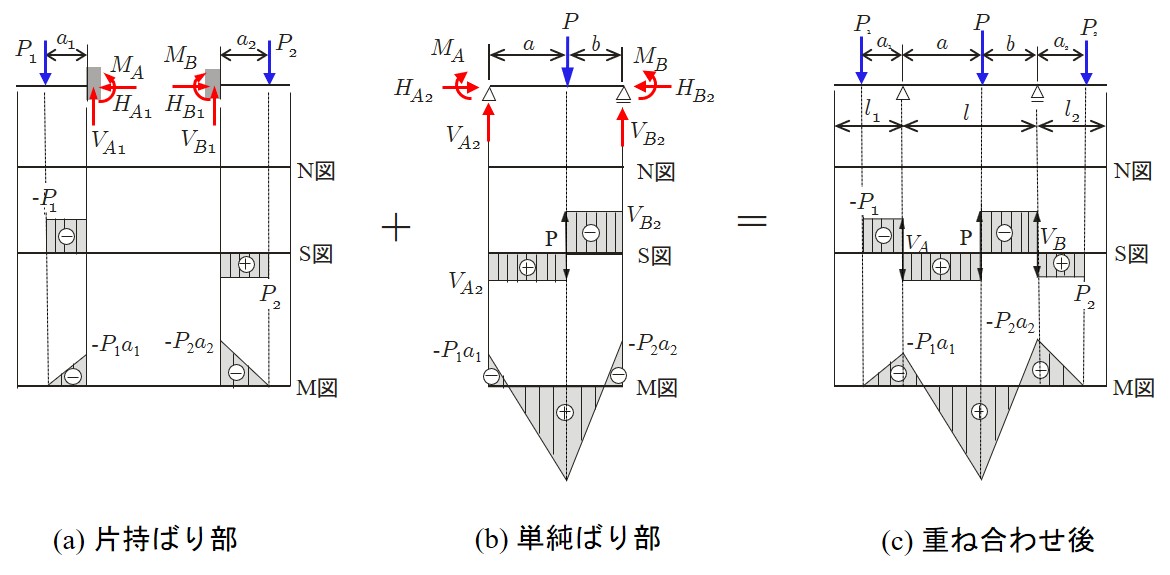 $\hspace{8em}$図4.3.25 断方法2による断面力の重ね合わせ