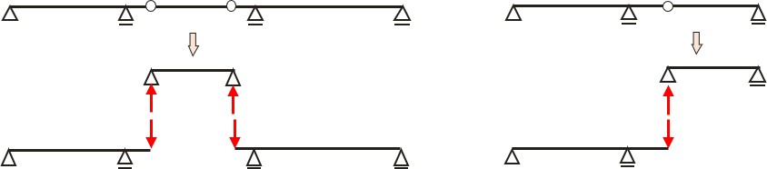図4.2.29 に示すような $(n-2)$ 個のヒンジを挿入して静定構造物としたものが