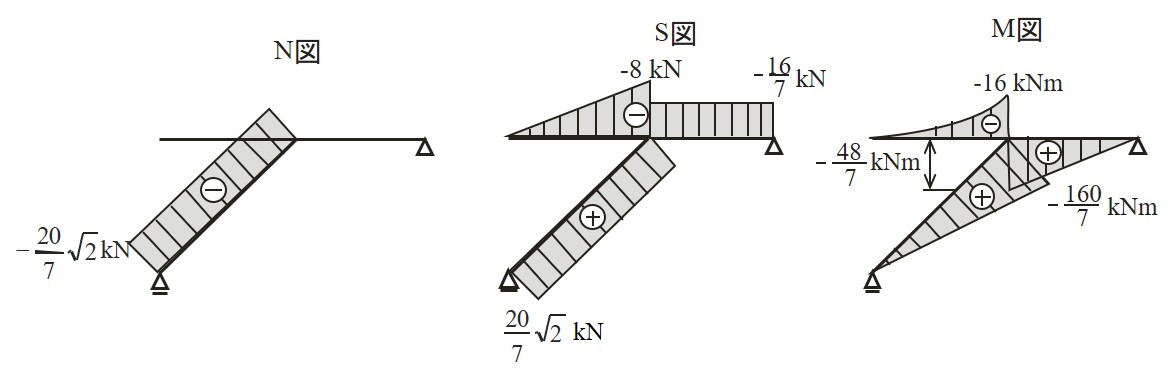$\hspace{2em}$図4.3.20(b) 断面力図