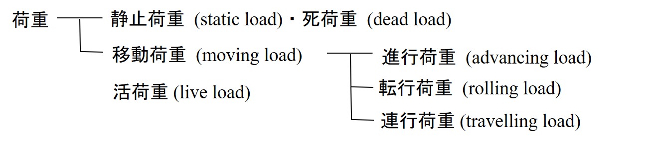 移動荷重 (moving load)に大別される.静止荷重は一定の位置に作用する一定の荷重で,自重のような
