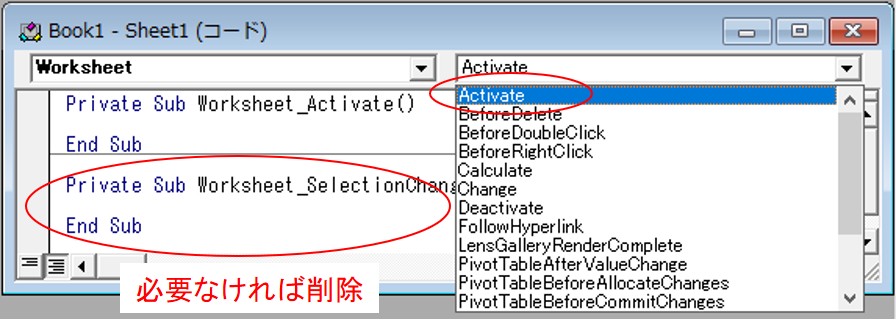 SelectionChange"がデフォルトとして選択されているので,必要に応じて,