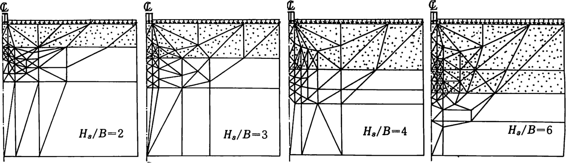 このように、川井モデルによる極限支持力は要素分割に左右されるが、一方では要素分割に正しいすぺり線が含まれていると簡単な要素分割でより正確に極限支持力を求めることができる。このことが、川井モデルの利点の一つであり、また不利な点ともなっている。