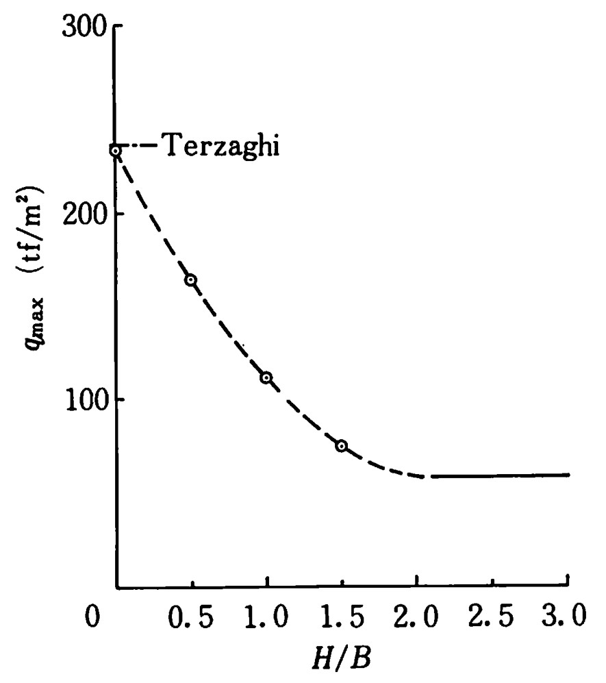 $\hspace{6em}$図4.7 自重を考慮した浅い帯基礎の支持力