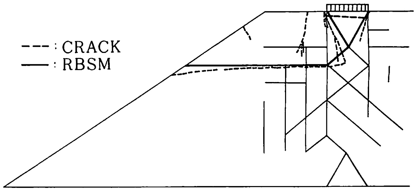 川井モデルの場合、要素分割辺上でのみすべりが発生する。しかし、このように複雑な問題の場合、予め破壊するであろう特定のすべり線を予測することは難しい。そこで、考えられるすべり線を幾つか想定し、