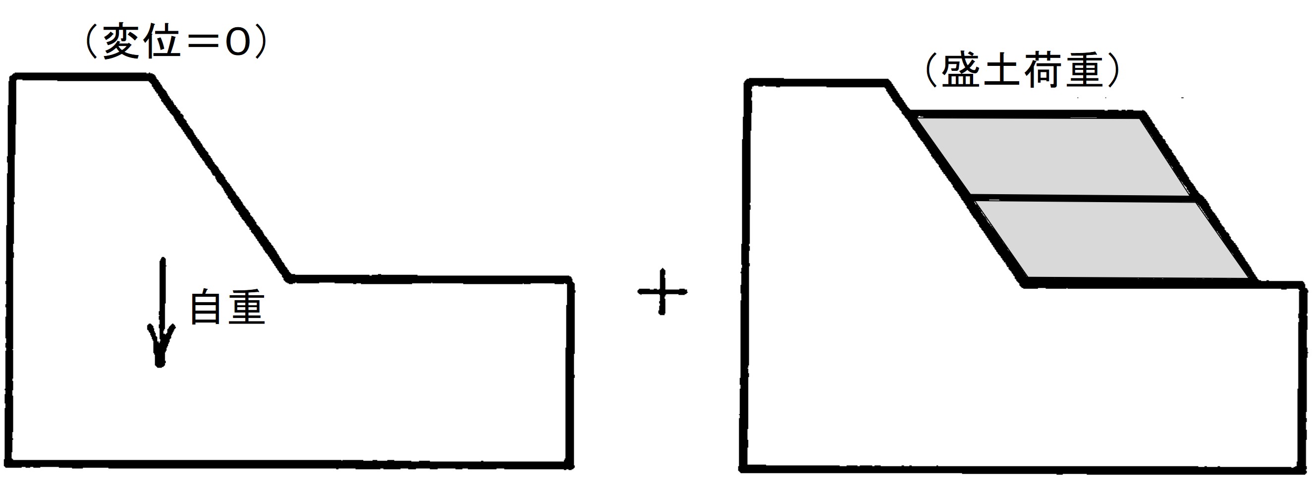 $\hspace{2em}$(a)初期地圧計算$\hspace{8em}$(b)盛土