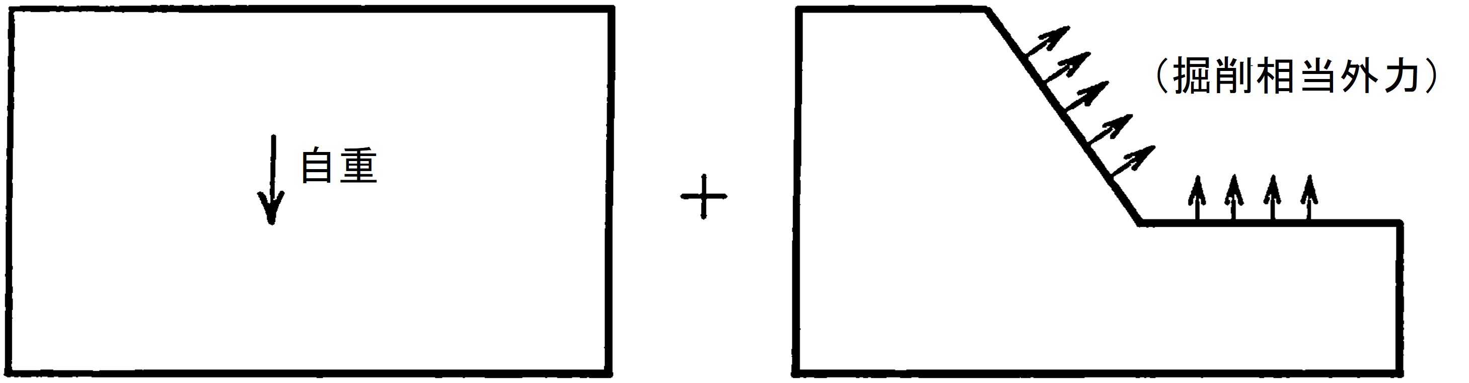 $\hspace{2em}$(a)初期地圧計算$\hspace{6em}$(b)切土
