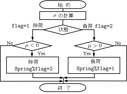 Spring%flag = -2 にセットする.(*2)の判定文は今回の表面力が降伏しているか否かの判定で,もし,降伏していればフラッグを1とし,以後,塑性としての取り扱いをする.このフローをプログラム化したものが