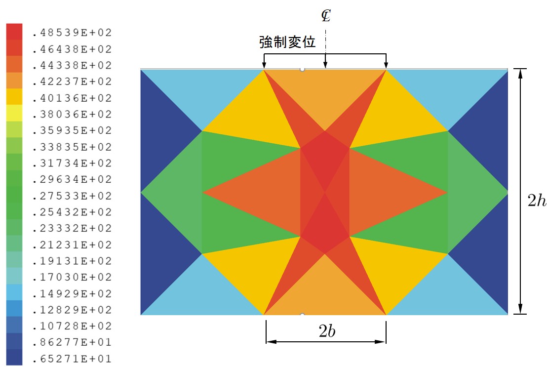 図7.2 に示す.この例題では $2h=5{\rm cm}, 2b=2.5{\rm cm}, h/b=2$ としている.ただし,