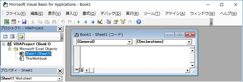 Sheet1を用いてプログラムを作成する場合について説明する.