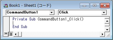 - ② 「プロジェクトエクスプローラ」でマウスにより「Sheet1」をダブルクリックすると,図1-12のようにモジュール表示領域にSheet1に関するコードウィンドウが表示される.