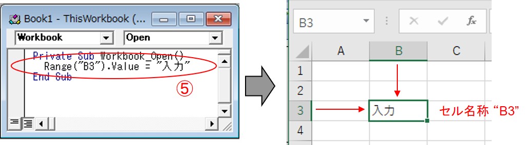 - (注)図1-8に示す「Workbook_Open」は,Workbookが開かれたときに,Sub~End Subに記述されたプログラムが実行されるプロシージャである.